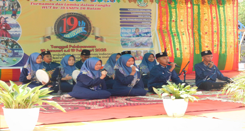 Pertama kalinya SMPN 26 Batam mengadakan lomba Hadrah tingkat SMP/MTs se-Kota Batam. Lomba ini merupakan salah satu lomba dalam HUT Ke-19 SMPN 26 Batam. Tidak hanya sebagai hiburan dan kreativitas, dengan menyenandungkan solawat serta pujian kepada Tuhan Yang Maha Esa, diharapkan dapat meningkatkan iman dan taqwa peserta didik melalui perlombaan ini. Lomba diadakan pada tanggal 12 Februari 2025.