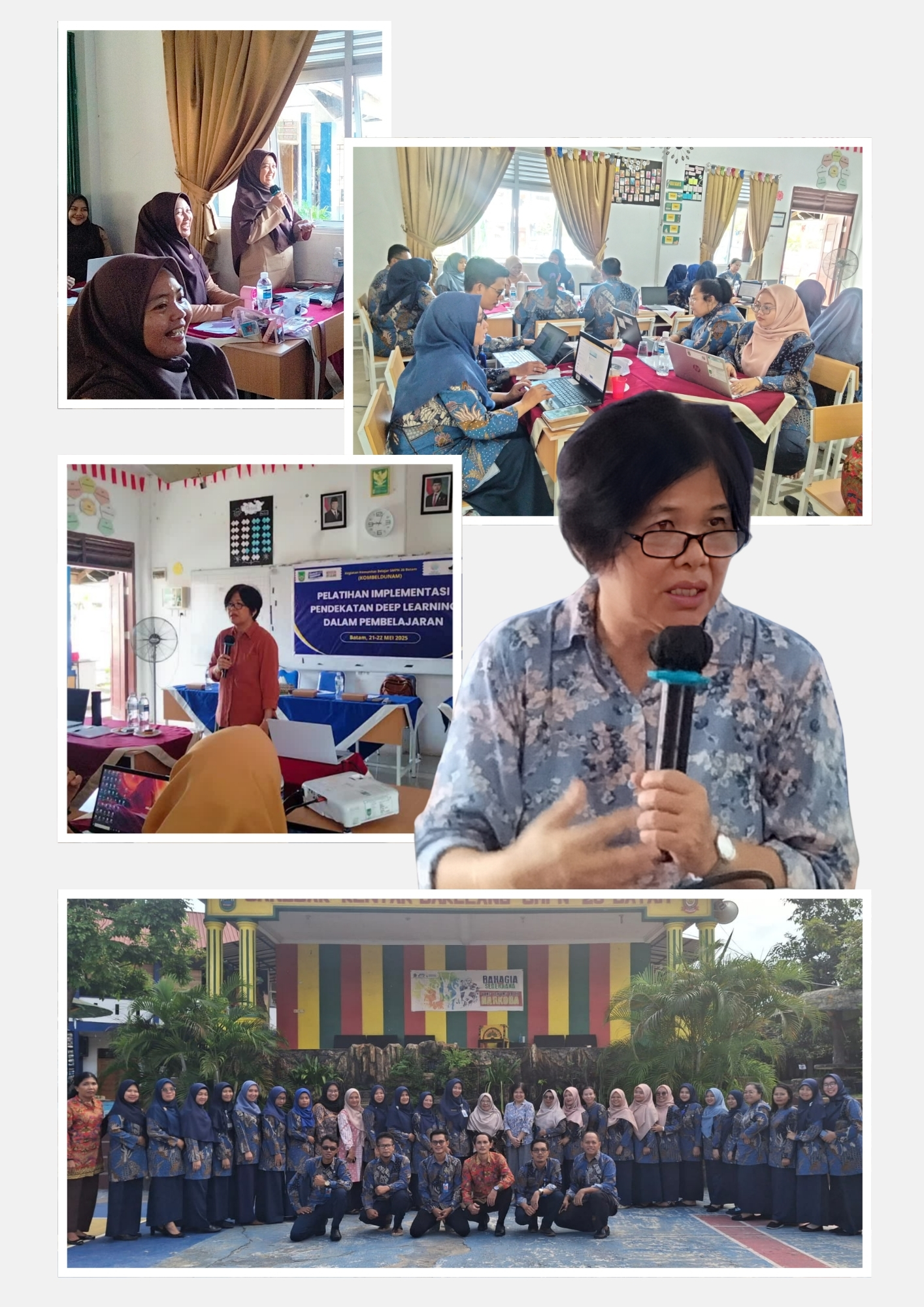 SMPN 26 Batam mengadakan pelatihan Implementasi Pendekatan Deep Learning dalam Pembelajaran bersama narasumber Dra. Lili Rosnawati, M.Pd. Pelatihan ini dilaksanakan selama dua hari, dimulai dari Rabu (21 Mei 2025) hingga Kamis (22 Mei 2025). Tidak hanya guru SMPN 26 Batam, pelatihan ini juga dihadiri oleh perwakilan guru guru dari SMPN 11 dan 53 Batam.